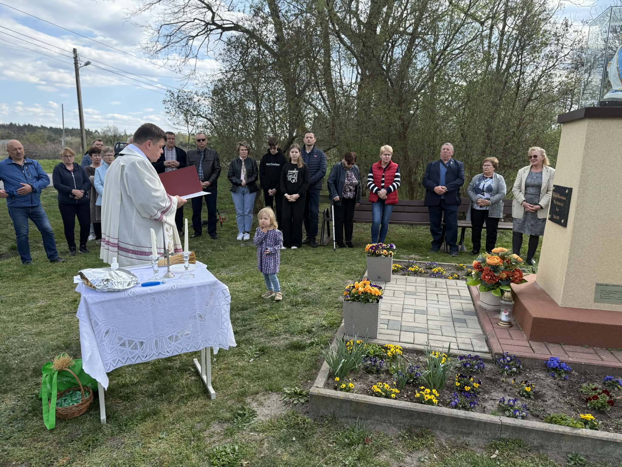 Dziękuje mieszkańcom za przybycie na tą uroczystość. Poświecenia dokonał proboszcz parafii Jazgarzewa ks.Jan Popiel. Odnowienie kapliczki to efekt zaangażowania wielu osób za co pięknie dziękuje🌹🌹🌹Kapliczka została postawiona w roku 1939 przez małżeństwo Stanisława, Heleny Kamińskich. Wierzę że kapliczka odnowiona i poświęcona będzie służyć mieszkańcom, gościom oraz przyszłym pokoleniom jako miejsce modlitwy i zadumy😊